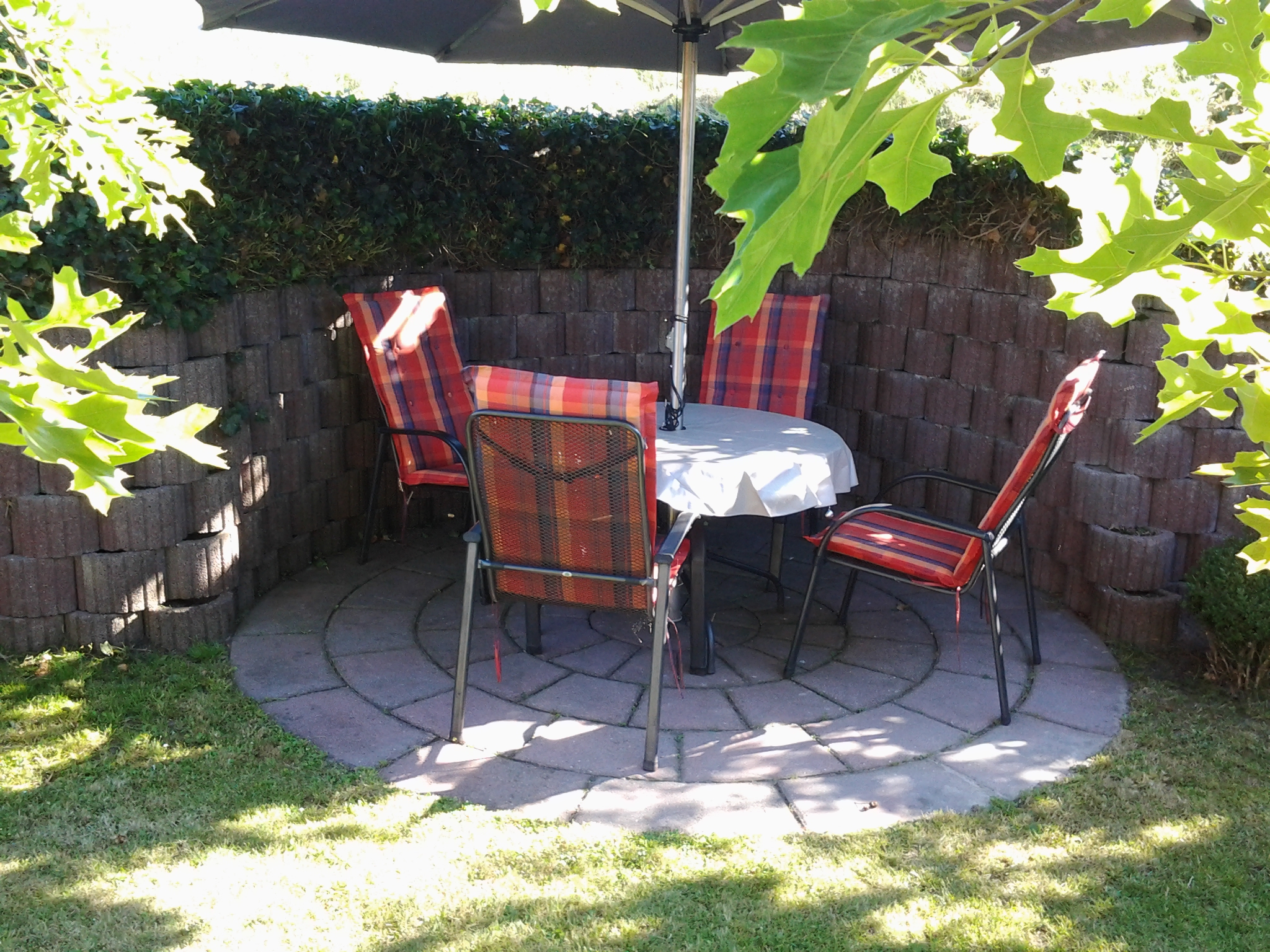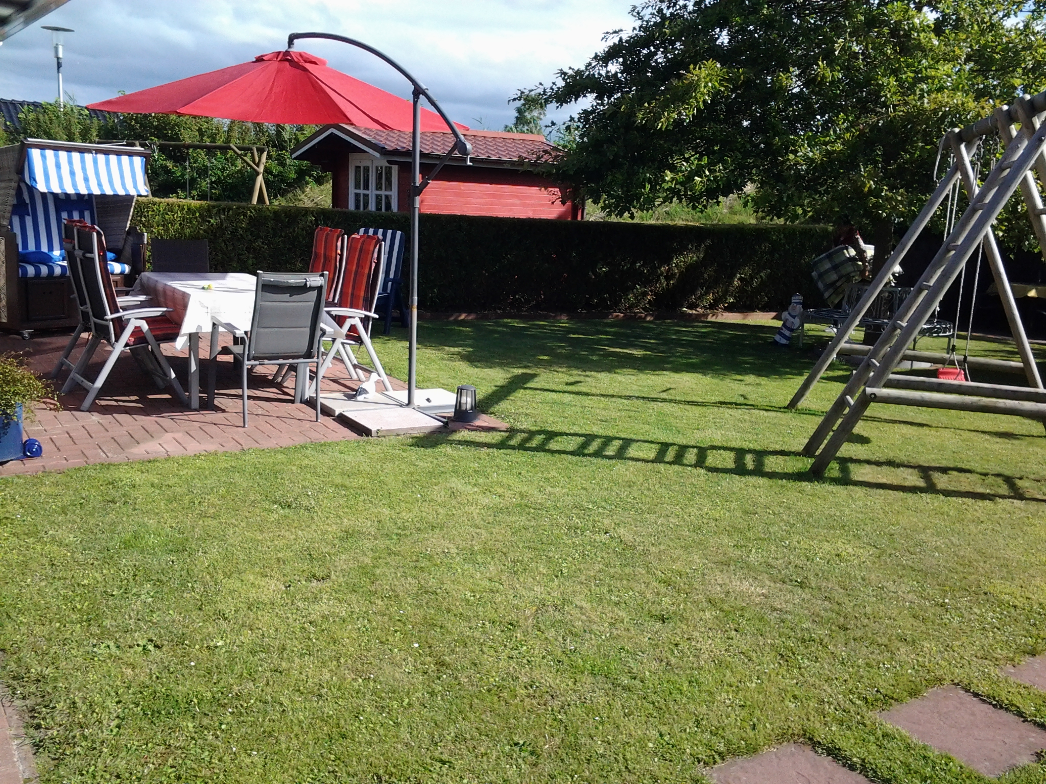 Die große südwestlich gelegene Terasse mit Strandkorb und die kleine schattige, im hinteren Teil des Garten gelegene ,Terasse lädt zum gemütlichen Entspannen ein.